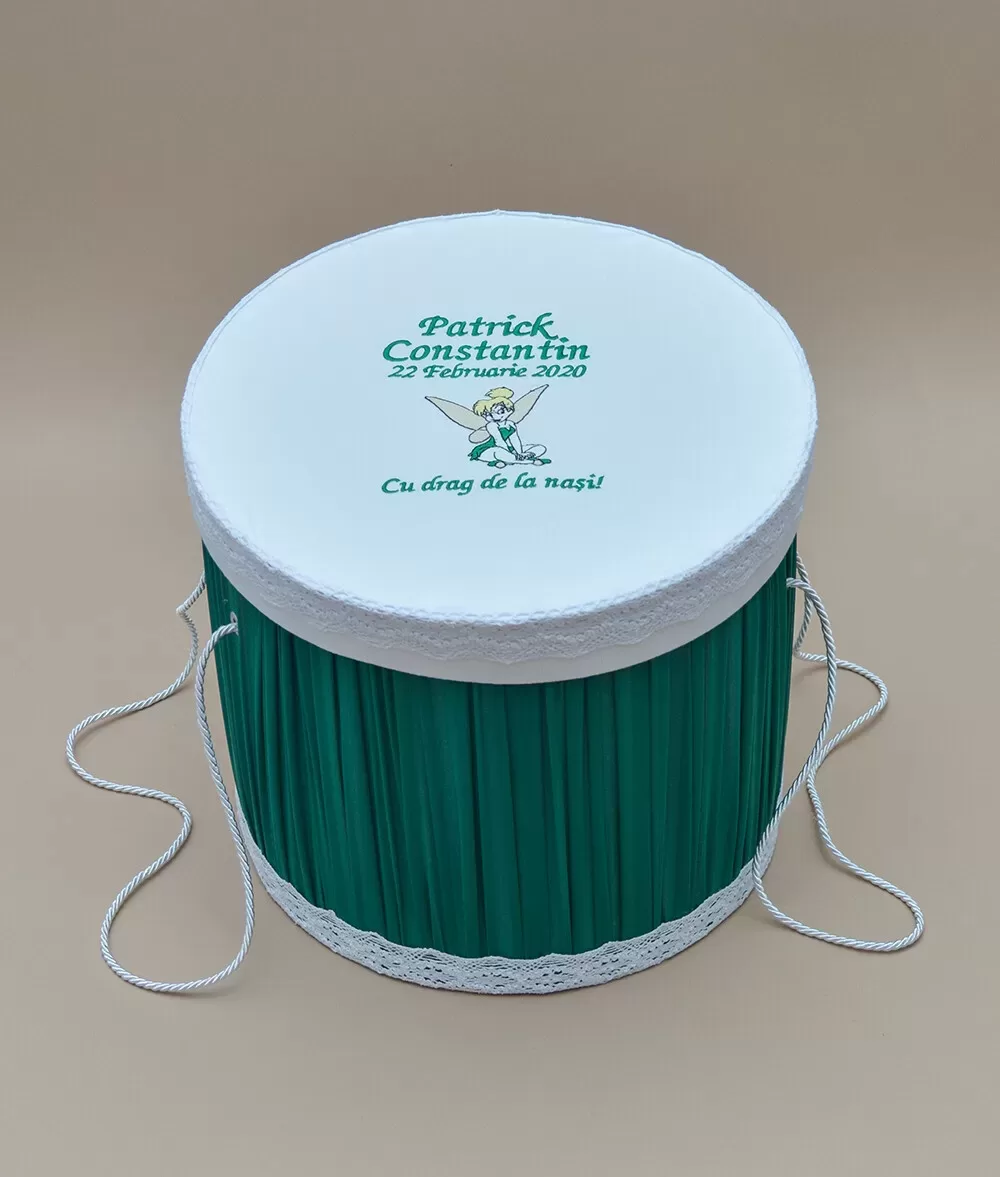 Cutie de botez personalizata pentru transportul trusoului bebelusului de acasa la biserica by Couture Bebe.