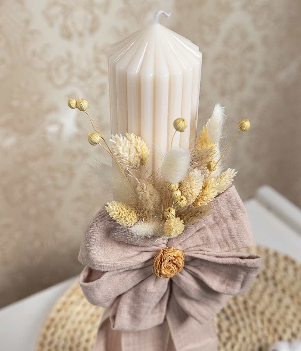 Descopera eleganta si puritatea cu Lumanare Botez Canelata crem de la Couture Bebe, o alegere perfecta pentru a adauga un strop de magie si unicitate in ceremonia de botez a micutului tau. Aceasta lumanare de botez, sculptata meticulos cu un design adorabil, este realizata din parafina de cea mai inalta calitate, asigurand o ardere curata si lunga. Lumanarea simbolizeaza protectia si blandetea, reflectand astfel spiritul evenimentului. Fiecare detaliu este gandit pentru a transforma botezul intr-o amintire pretioasa. Alege Lumanare Botez Canelata Crem de la Couture Bebe pentru a aduce un plus de caldura si lumina in aceasta zi speciala.