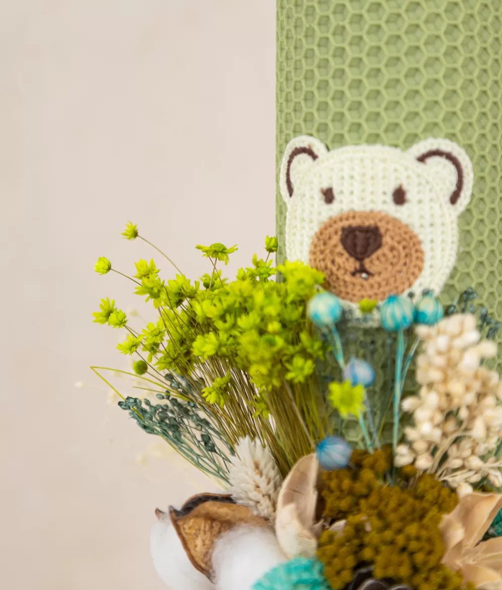 Toate produsele noastre sunt făcute cu dragoste și atenție la detalii pentru a oferi cea mai bună experiență pentru copilul tău. Alegeți din colecția noastră de haine de botez si ocazie și comandați cu încredere lumanare botez fagure verde olive – Couture Bebe!