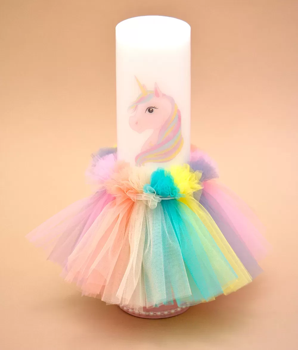 Produsa din ceara naturala imprimata si accesorizata in atelierele Couture Bebe®