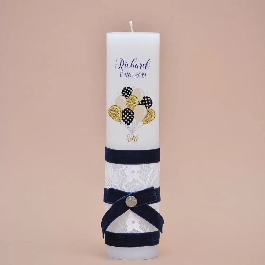 Lumanare de botez personalizata Baloane imprimata si accesorizata by Couture Bebe.