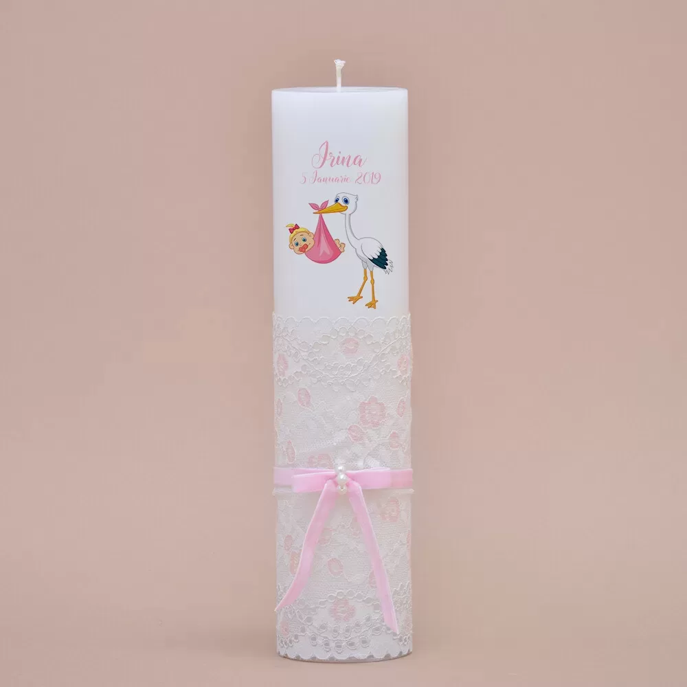 Lumanare de botez din ceara naturala imprimata si accesorizata by Couture Bebe.
