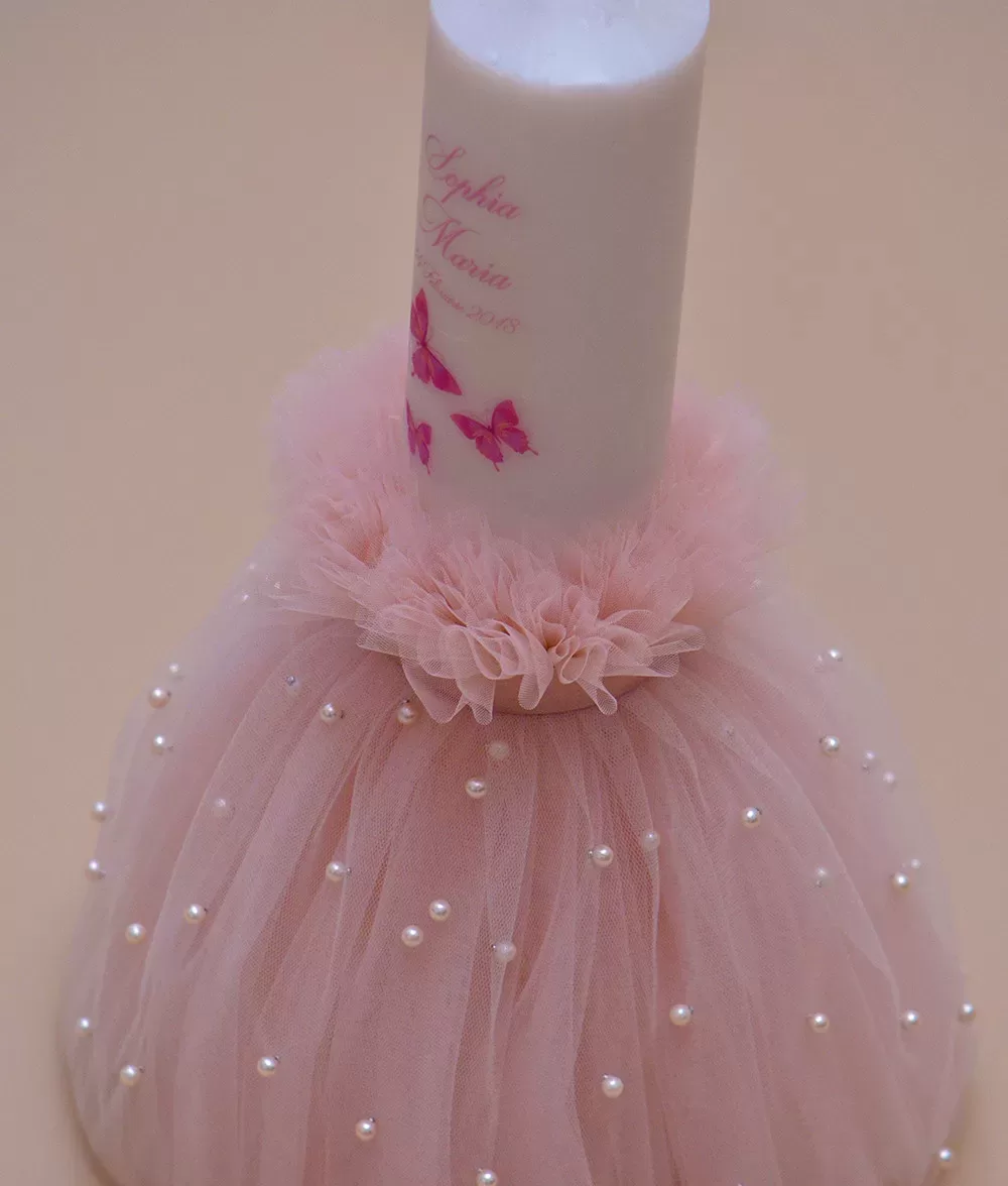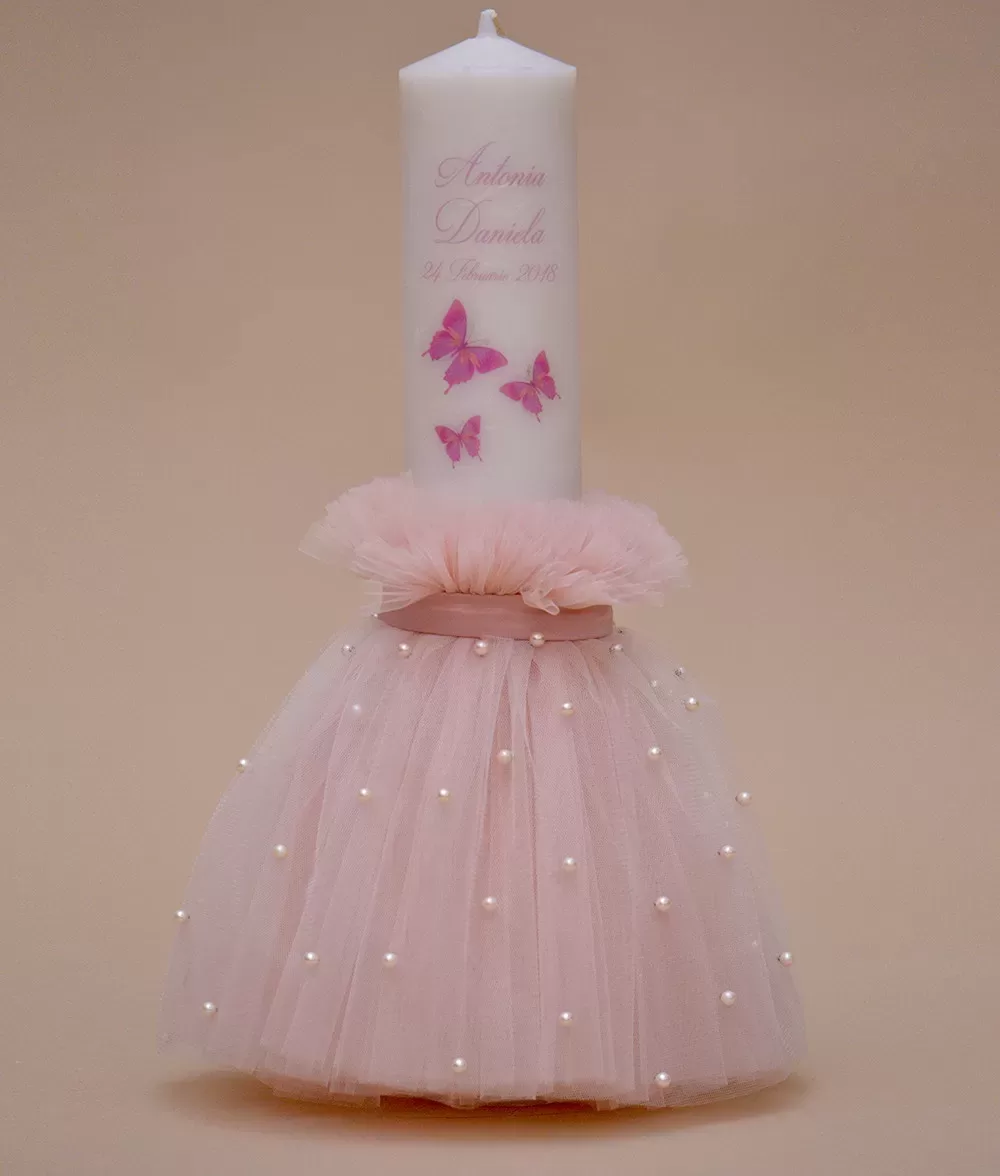 Lumanare de botez din ceara naturala imprimata si accesorizata by Couture Bebe.