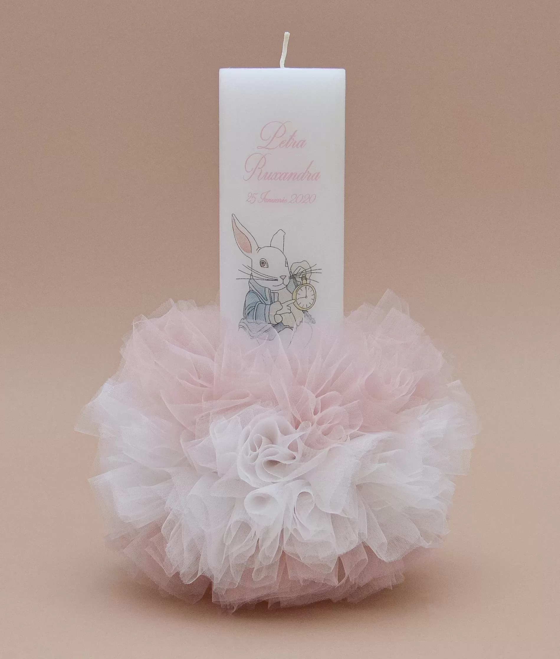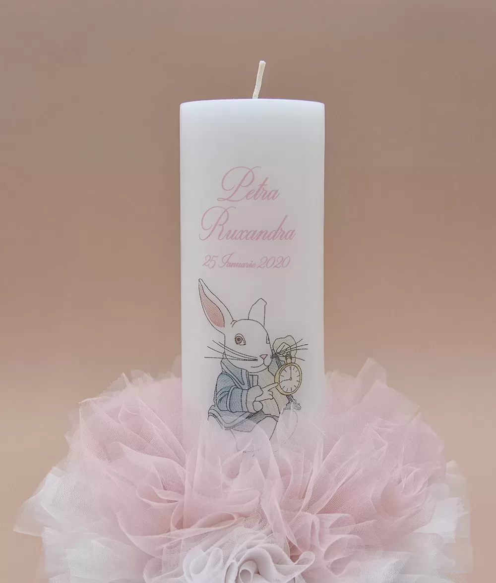 Lumanare de botez din ceara naturala imprimata si accesorizata by Couture Bebe.