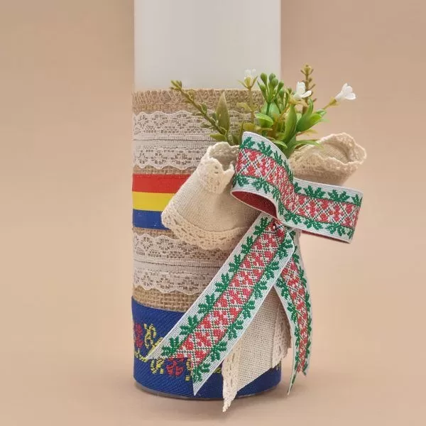 Materiale folosite: dantela, canepa, tricolor, banda tesuta, flori artificiale