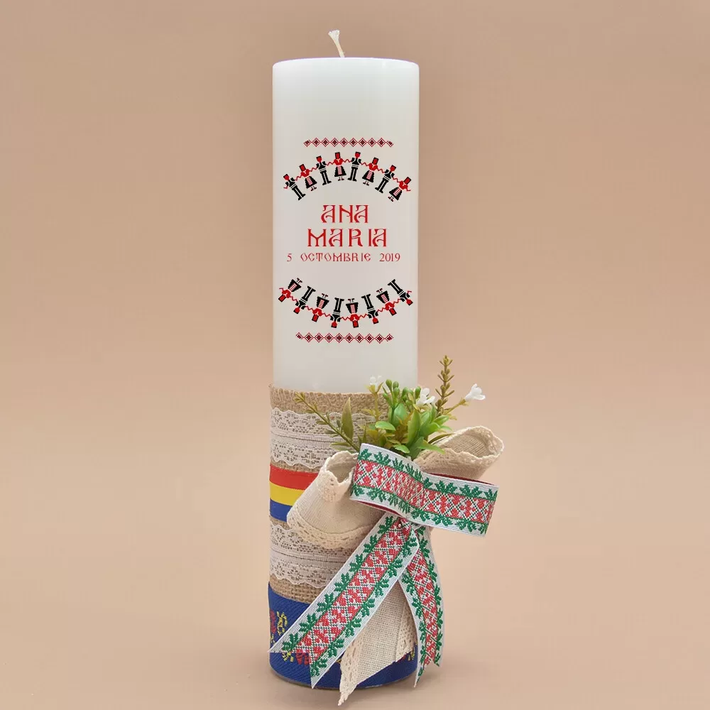 Lumanare de botez din ceara naturala imprimata si accesorizata by Couture Bebe.