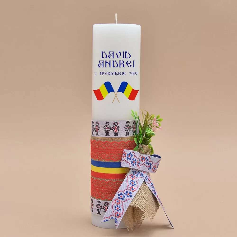 Lumanare de botez personalizata Tricolor realizata manual in atelierele Couture Bebe®