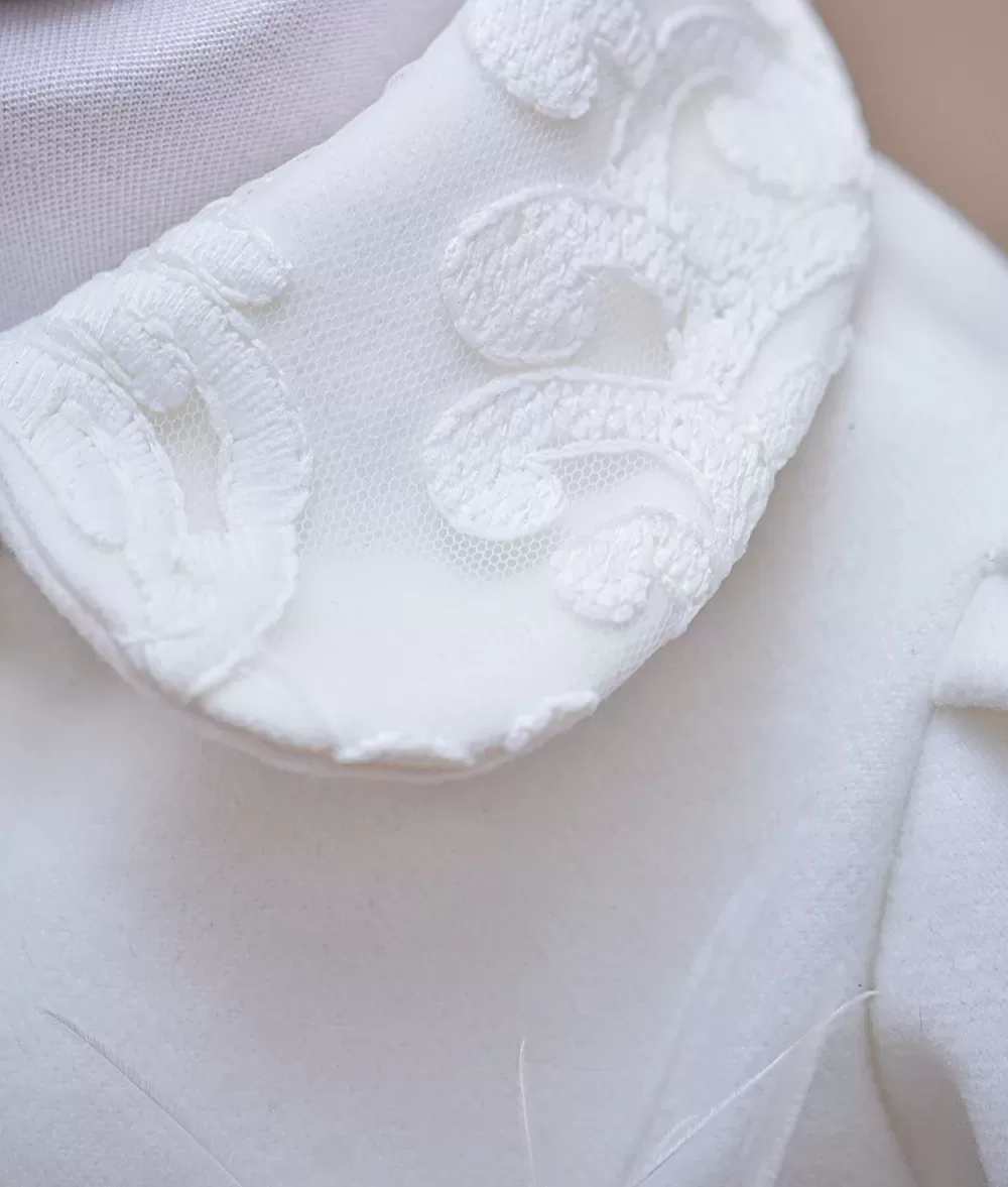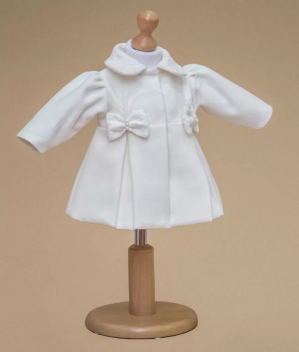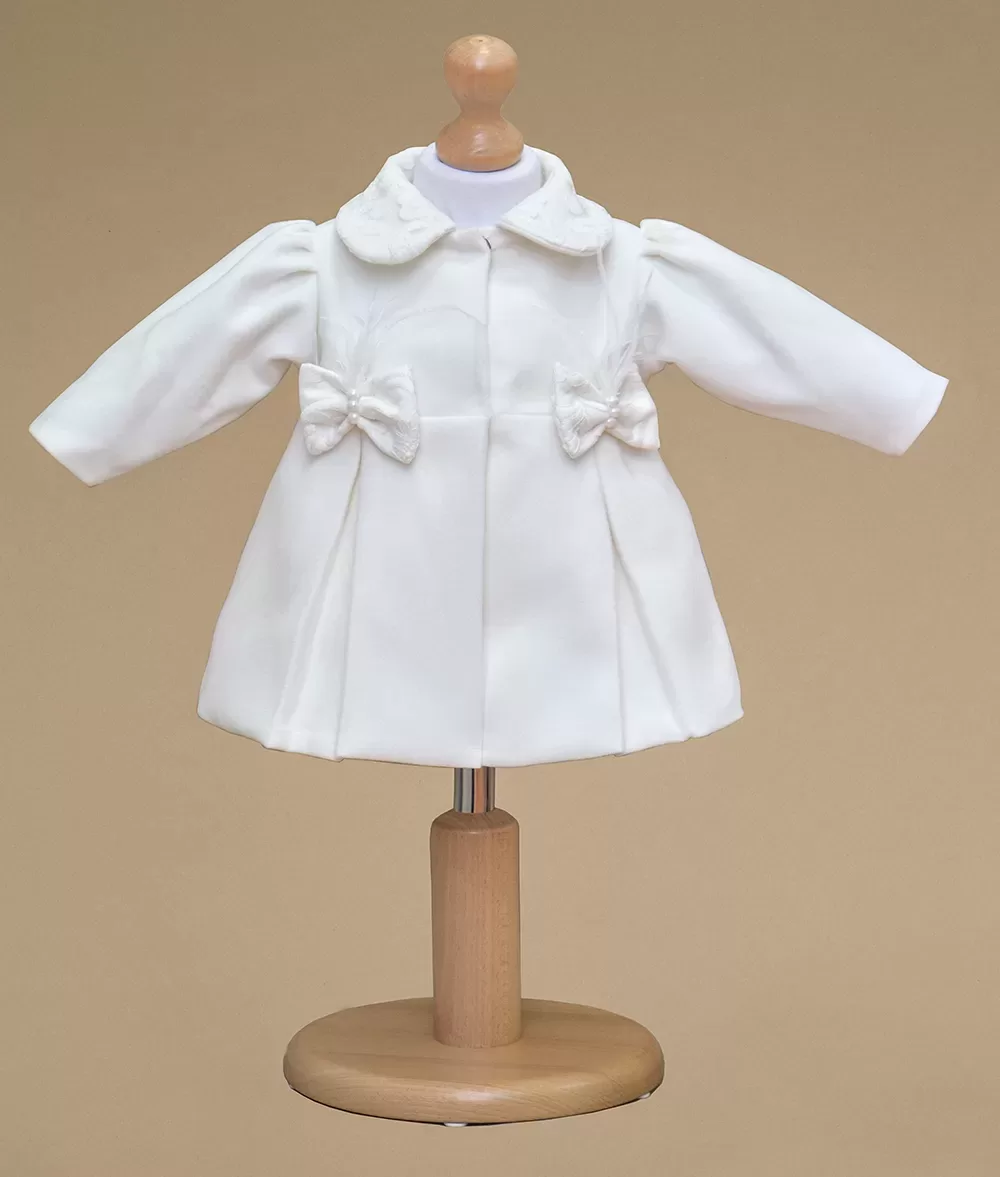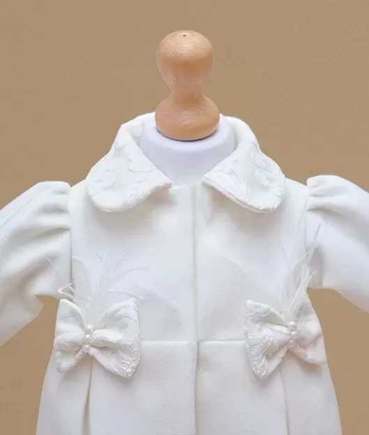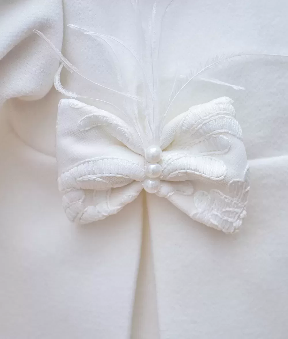 Palton din stofa accesorizat cu fundite si aplicatii din perle si pene