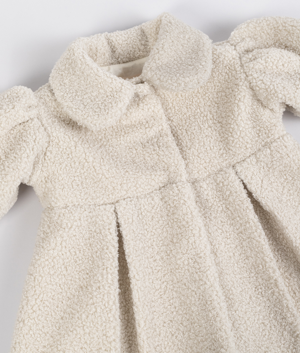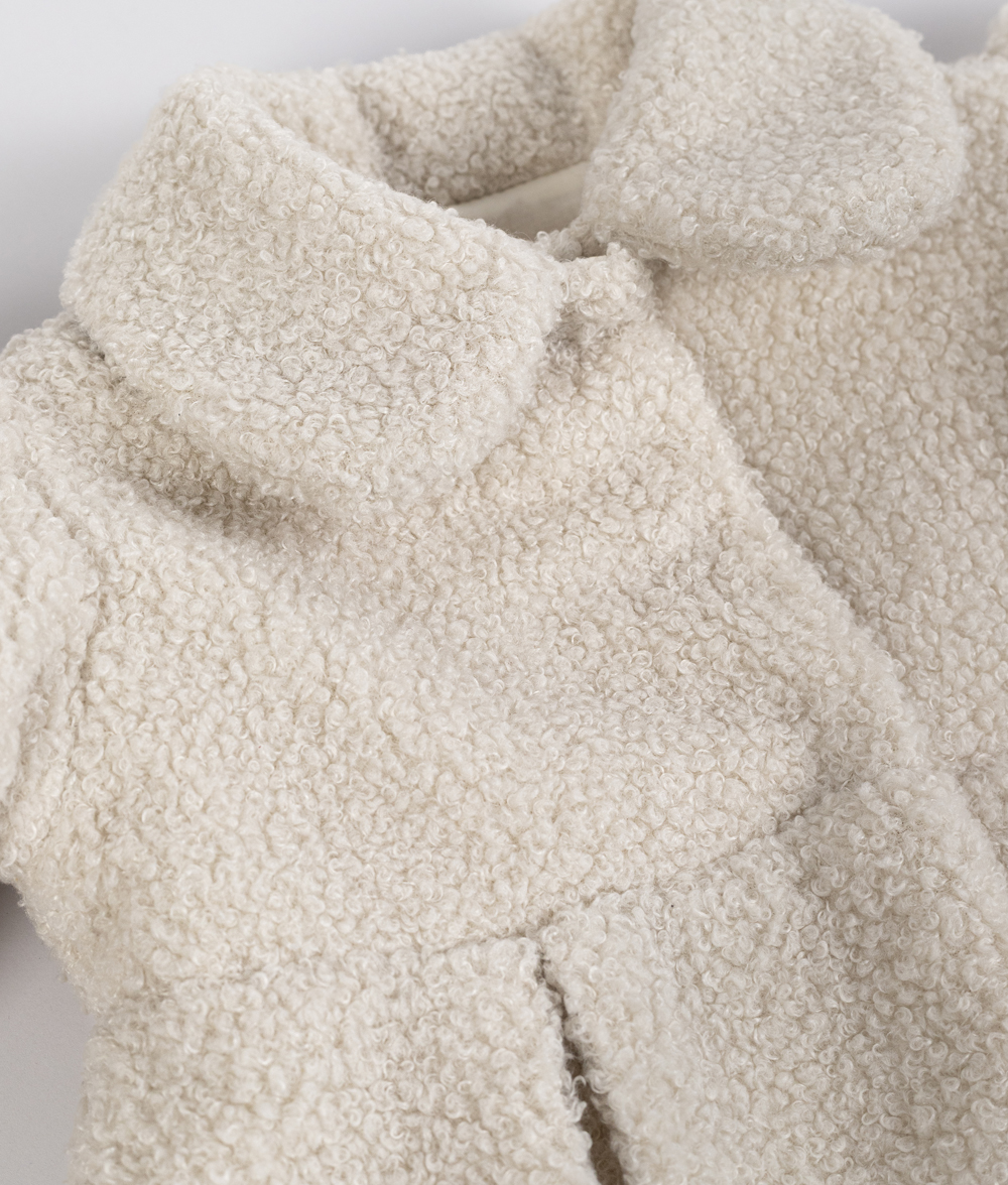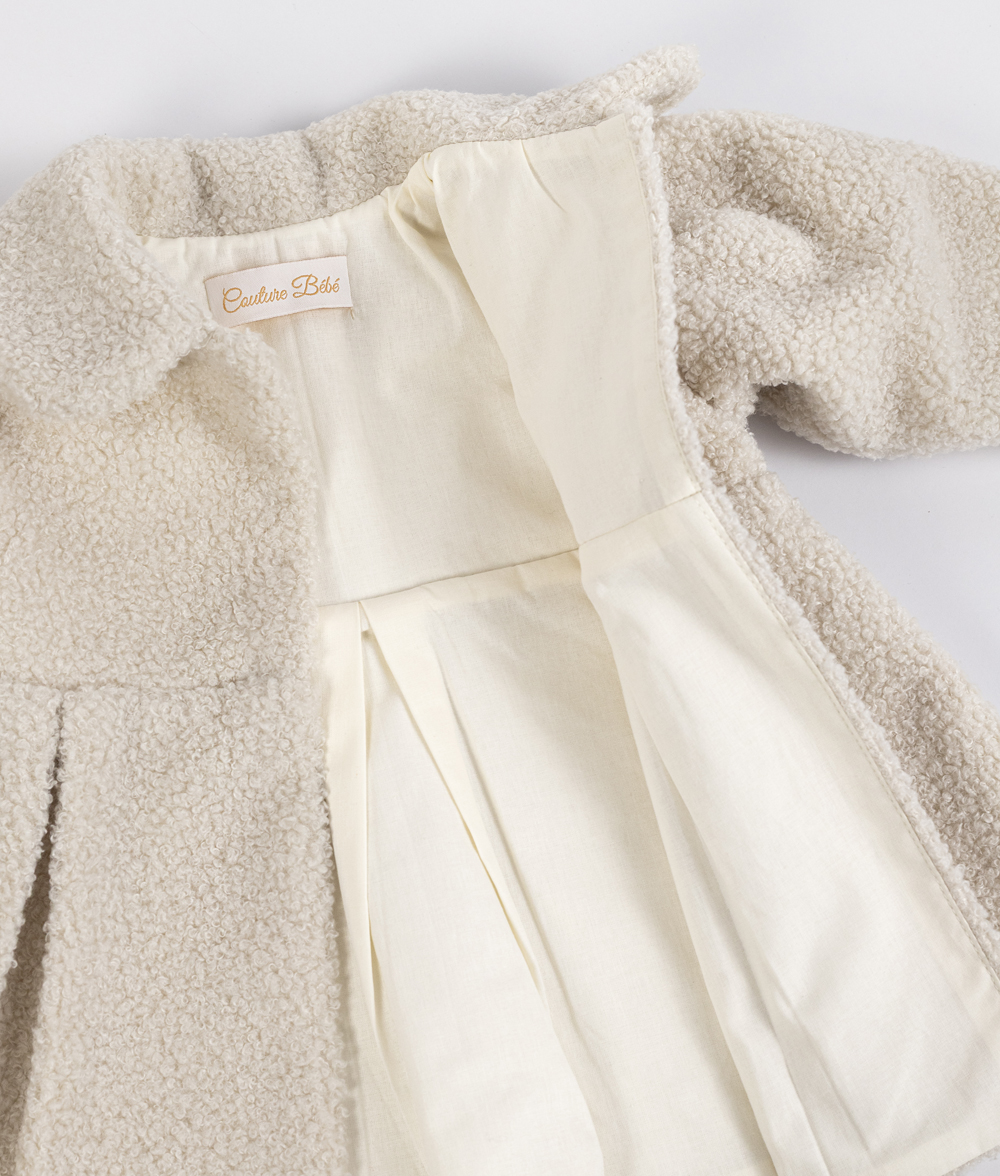 Confecționată din stofa boucle premium, moale și pufoasă la atingere, capa oferă un plus de confort și stil. Interiorul este realizat din bumbac organic, blând cu pielea sensibilă a copilului, asigurând o purtare plăcută pe tot parcursul zilei.