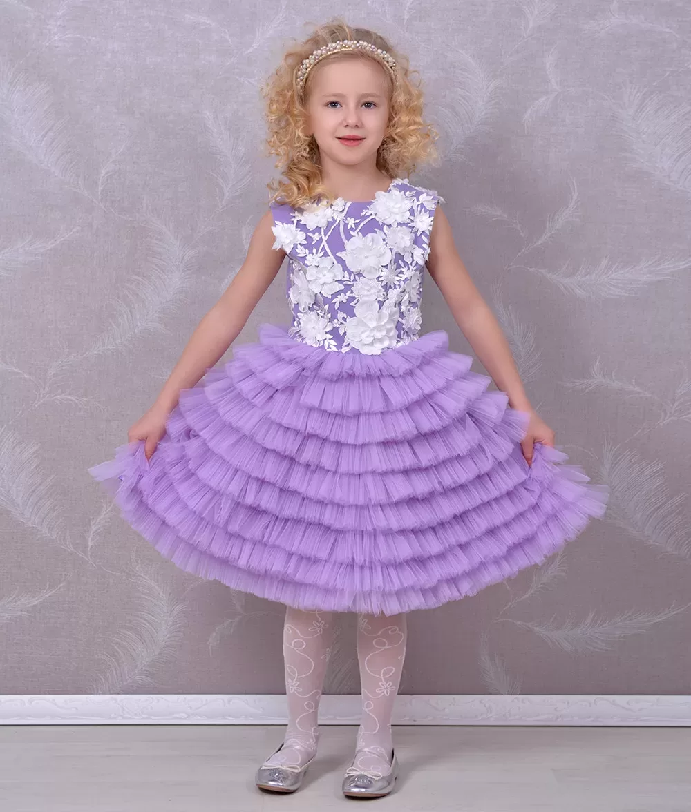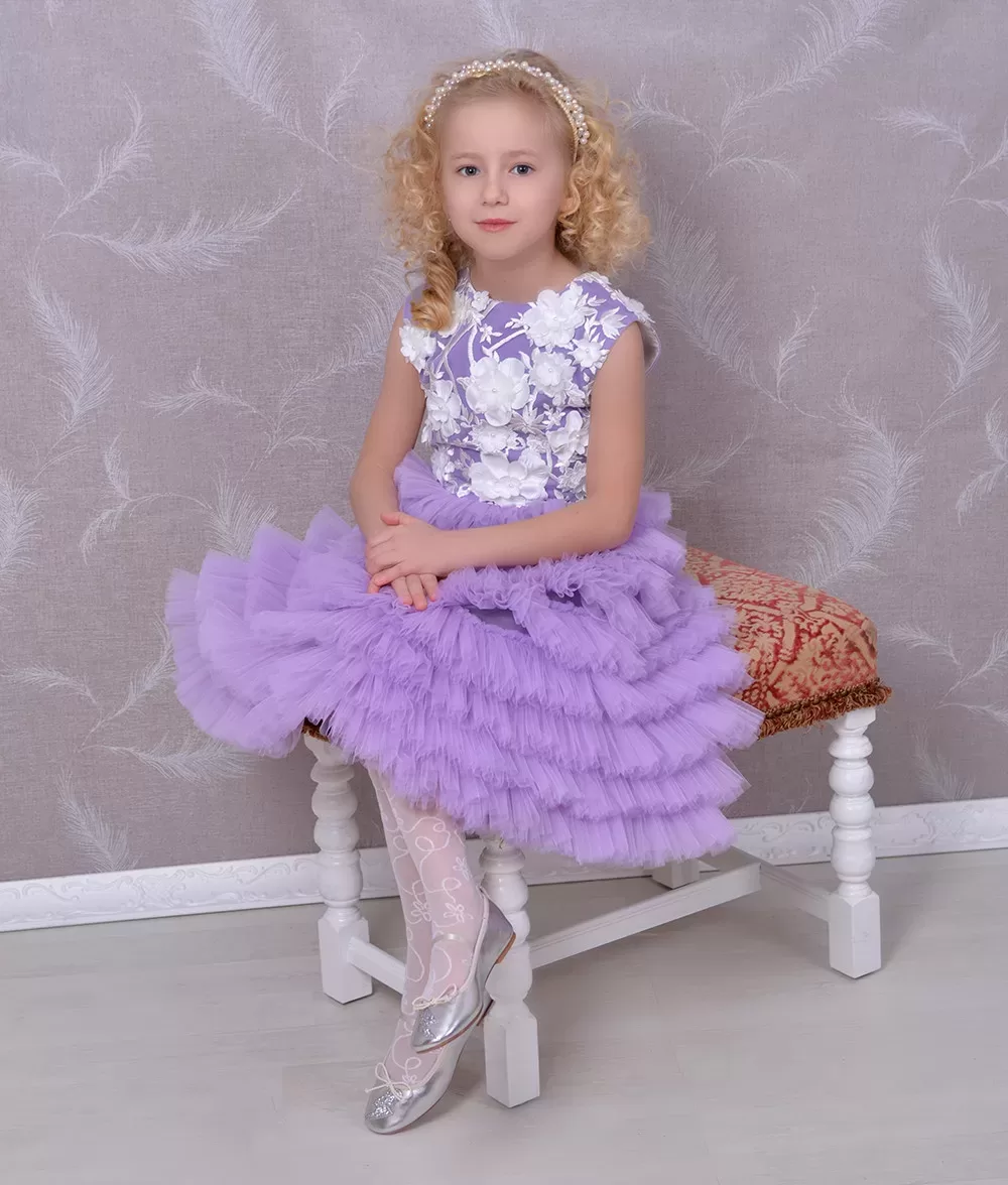 Rochie spectaculoasa realizata din dantela 3D cu model floral si volanase din tull, volanele sunt aplicate pe crinolon.pentru volum si un efect spectaculos.