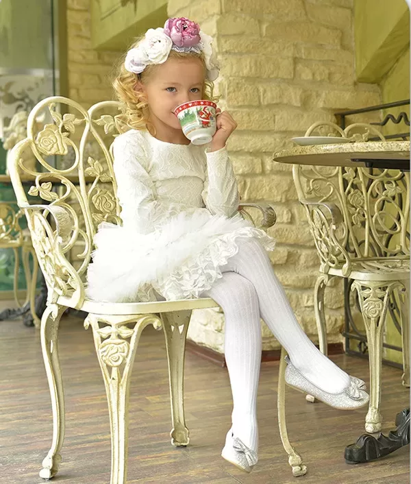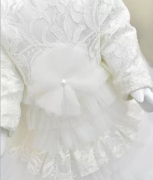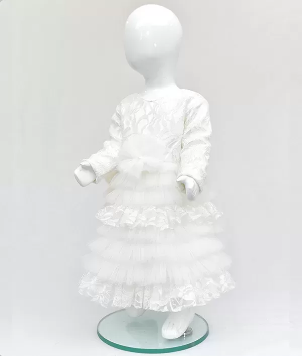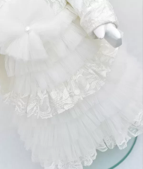 Tinuta poate fi completata cu bentita si o pereche de botosei, decorate si asortate cu rochia.
