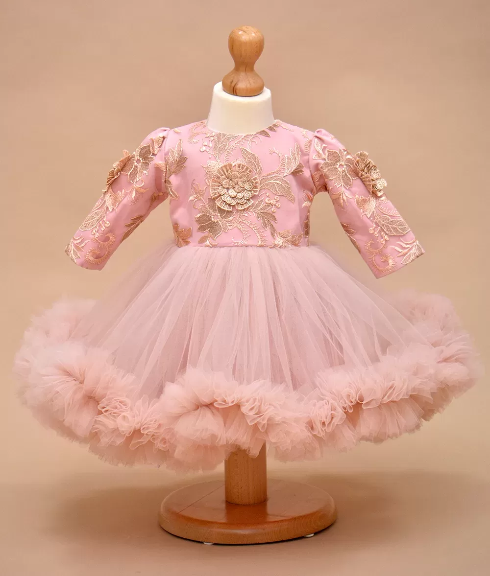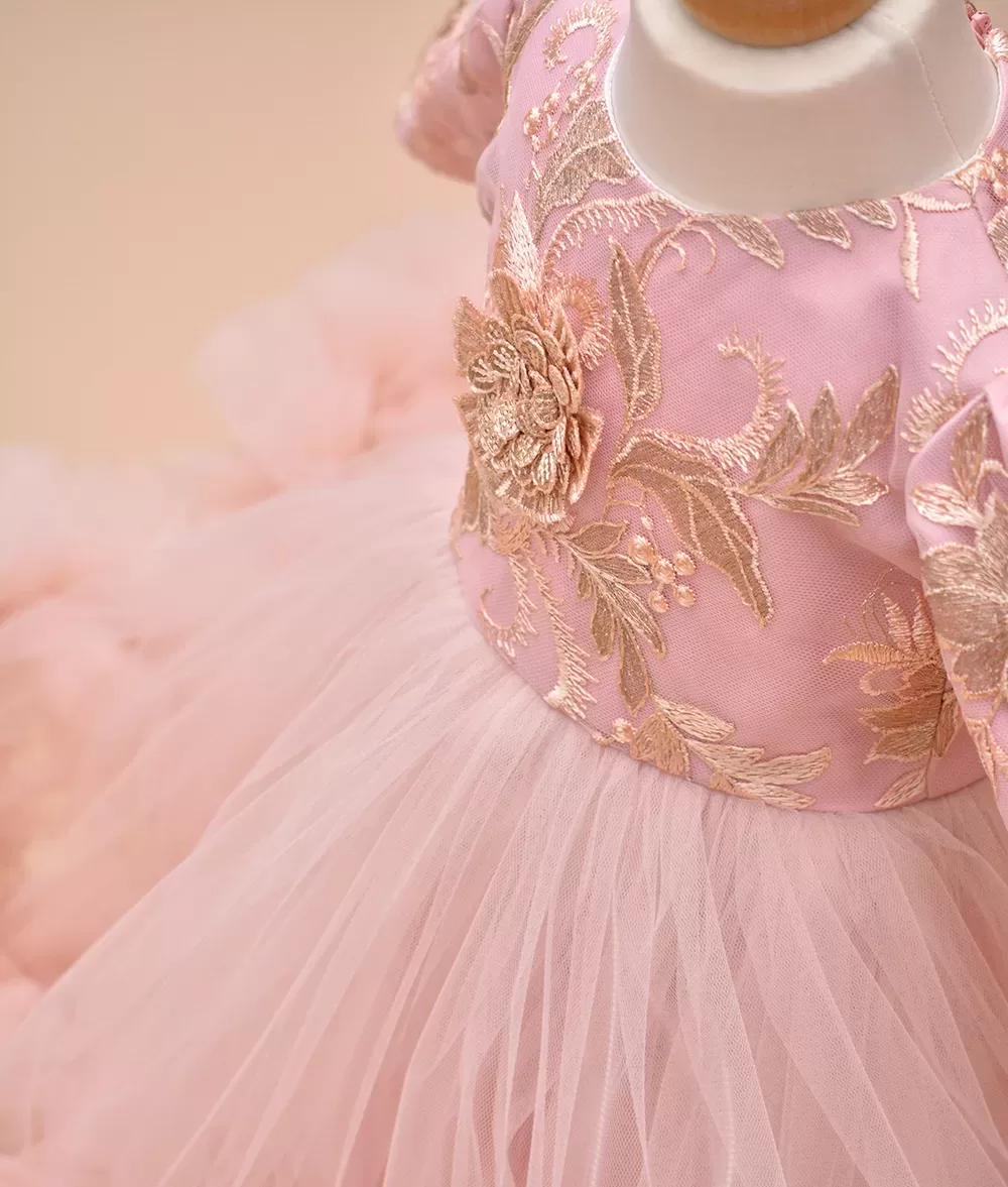 Rochie pentru botez spectaculoasa din tull fin si dantela 3D.