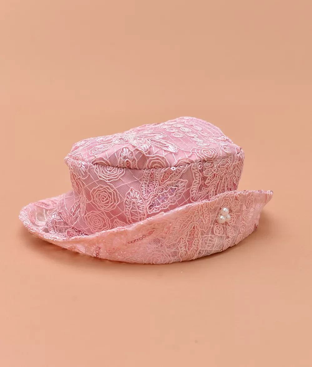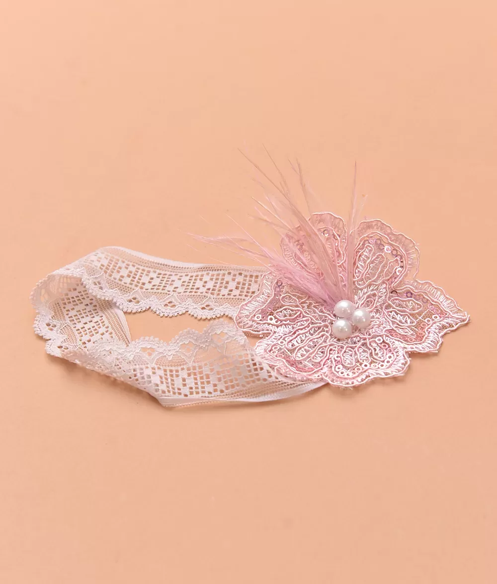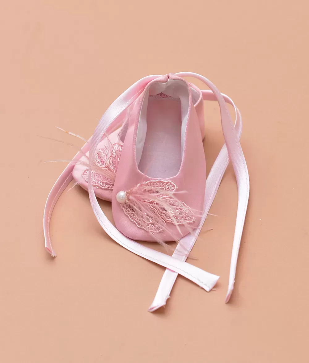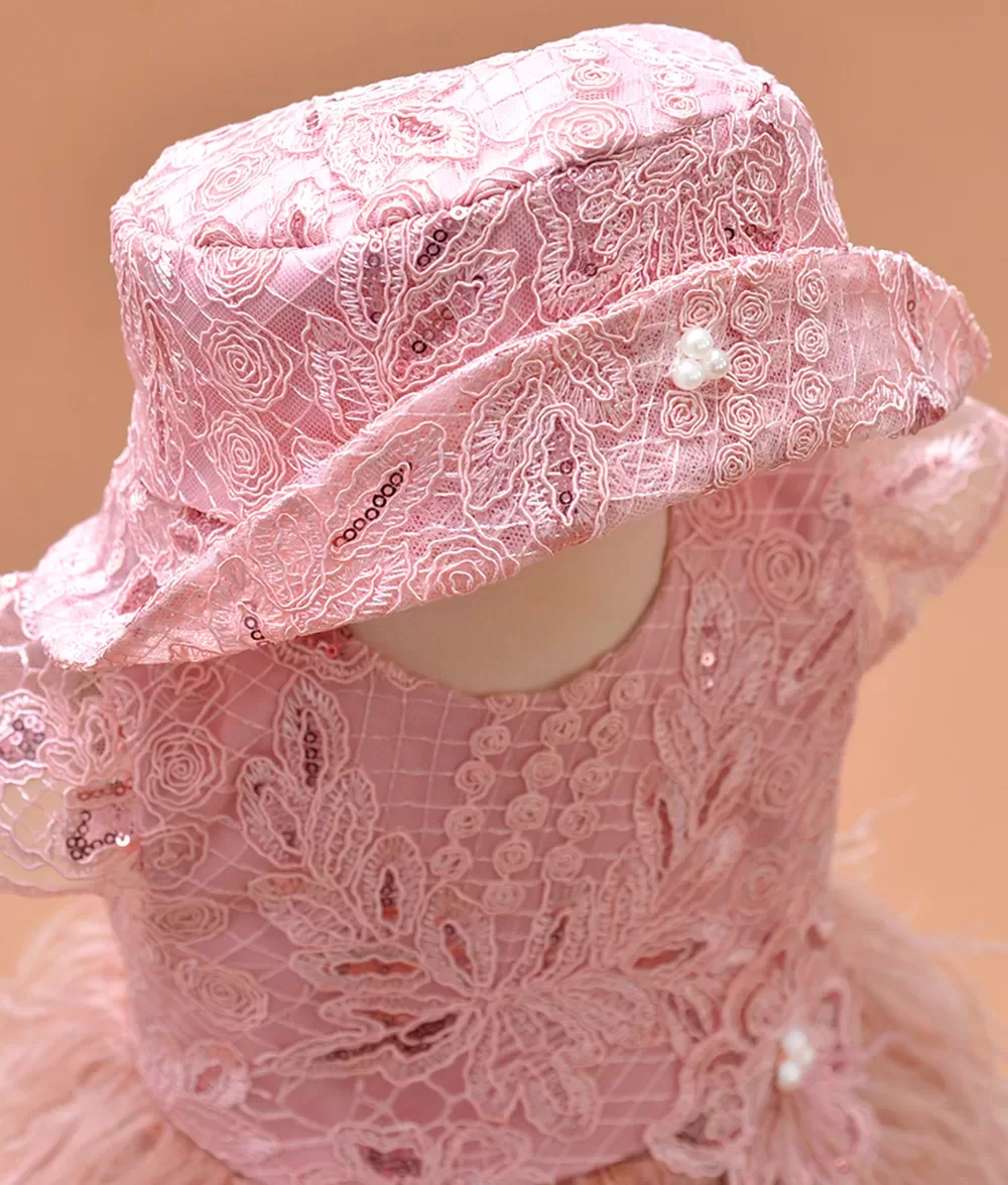 Rochita botez couture din dantela roz si pene de strut roz in degradee