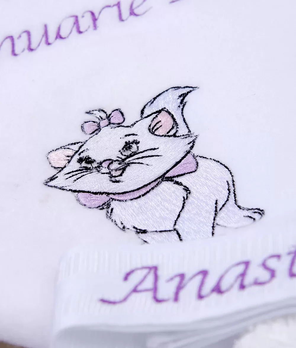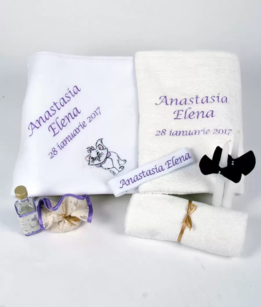 Trusou botez personalizat Aristocats format din 10 piese realizat in ateliere Couture Bebe®