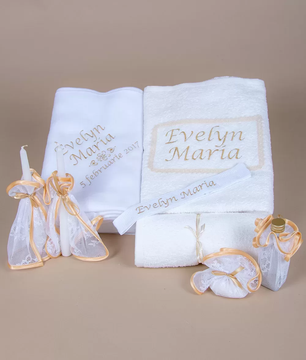 Trusou de botez Maria format din 10 piese realizat cu multa dragoste in ateliere Couture Bebe®